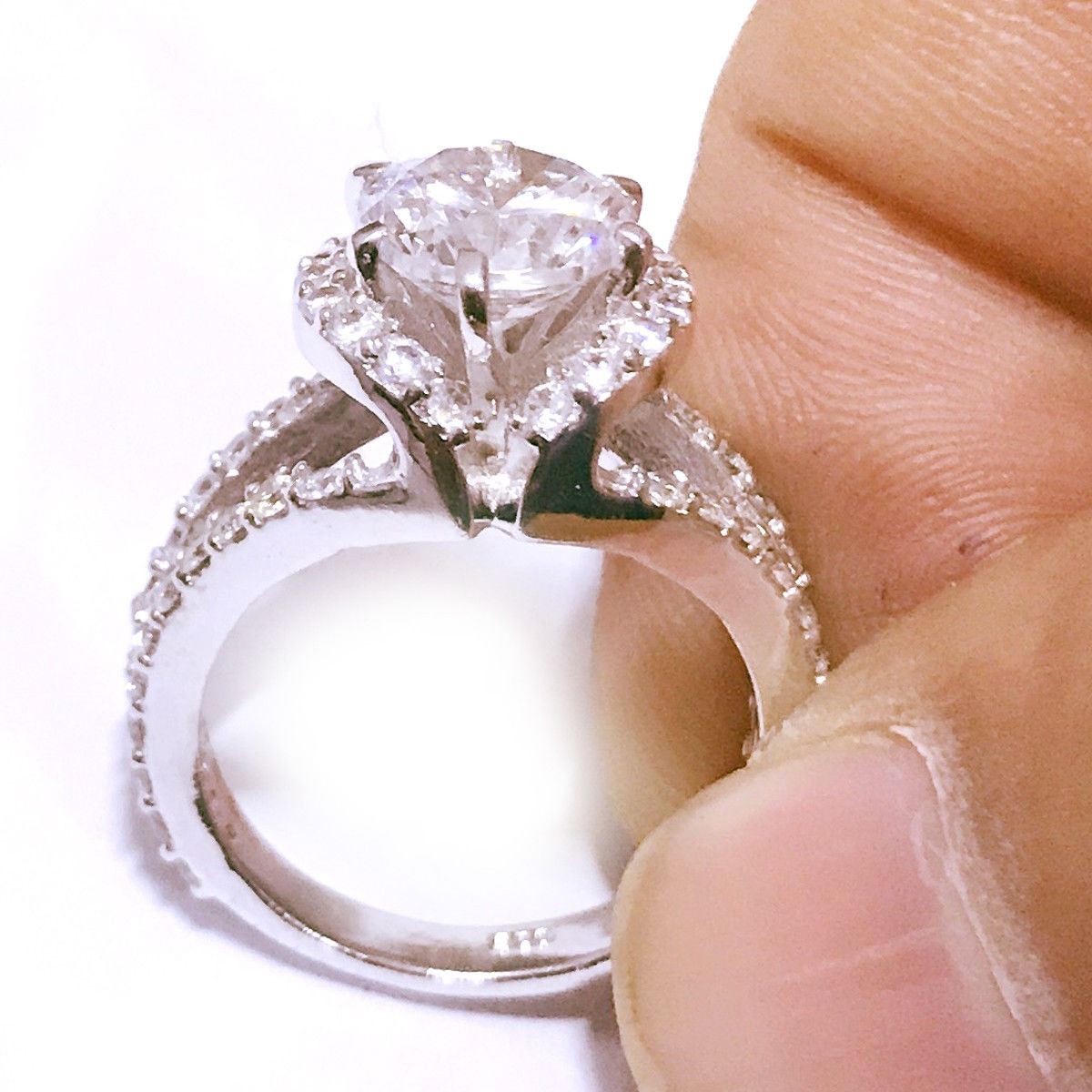 DAZZLING 3 CT CENTER STONE DIAMOND RING.THIS LAB CREATED DIAMOND MOSSANITE RING IS MOUNTED RATED VVS1-- COLOR d-h.MOUNTED IN SOLID .925 STERLING SILVER WITH cz ACCENT STONES.SIZE 7.THIS LAB DIAMOND WILL TEST POSITIVE FOR A DIAMOND ON ANY DIAMOND TESTER.MOISSANITE IS THE WORLD'S MOST BRILLIANT GEM. WITH A REFRACTIVE INDEX OFf 2.65-2.69, MOISSANITE EXHIBITS MORE BRILLIANCE THAN A DIAMOND. AND THANKS TO A DISPERTION THAT'S 2.4 TIMES HIGHER THAN A DIAMOND, MOISANITE BENDS LIGHT INTO MESMERIZING RAINBOW ELECTRIC FLASHES OF FIRE... MORE THAN "TWICE " AS MUCH AS A DIAMOND. BY DAY AND BY NIGHT MOISANITES LEGENDARY BRILLANCE IS SPECTACULAR.GET READY FOR THE COMPLIMENTS ON THIS ONE ! DON'T MISS OUT ON THIS ONE. TOTAL GRAM WT IS 5.3 GRAMS.