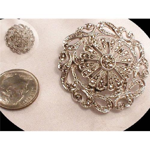 Right from the 20's comes this marcasite sterling brooch that is as bright as diamonds and in mint condition. These are so spectacular when you see them in person, that the photos never do them justice. This is 1 1/2" across and made in the shape of a raised dome. I don't think it has ever been worn.