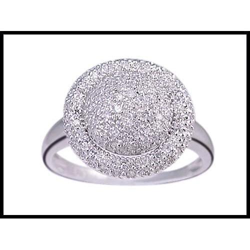 Love sparkling diamonds? Love dazzle? Love great design and workmanship? HERE IT IS AT A BARGAIN PRICE BEYOND YOUR DREAMS! Ring size 7-1/4. 14K solid white gold. The diamond circle is 14mm (over ½ inch) in diameter. The diamonds are set so close together, and are very small stones that do not allow a fair estimate of carat weight, but each must average less than .01 each. Tag price was only $800.00, but now will be yours for well less than half.