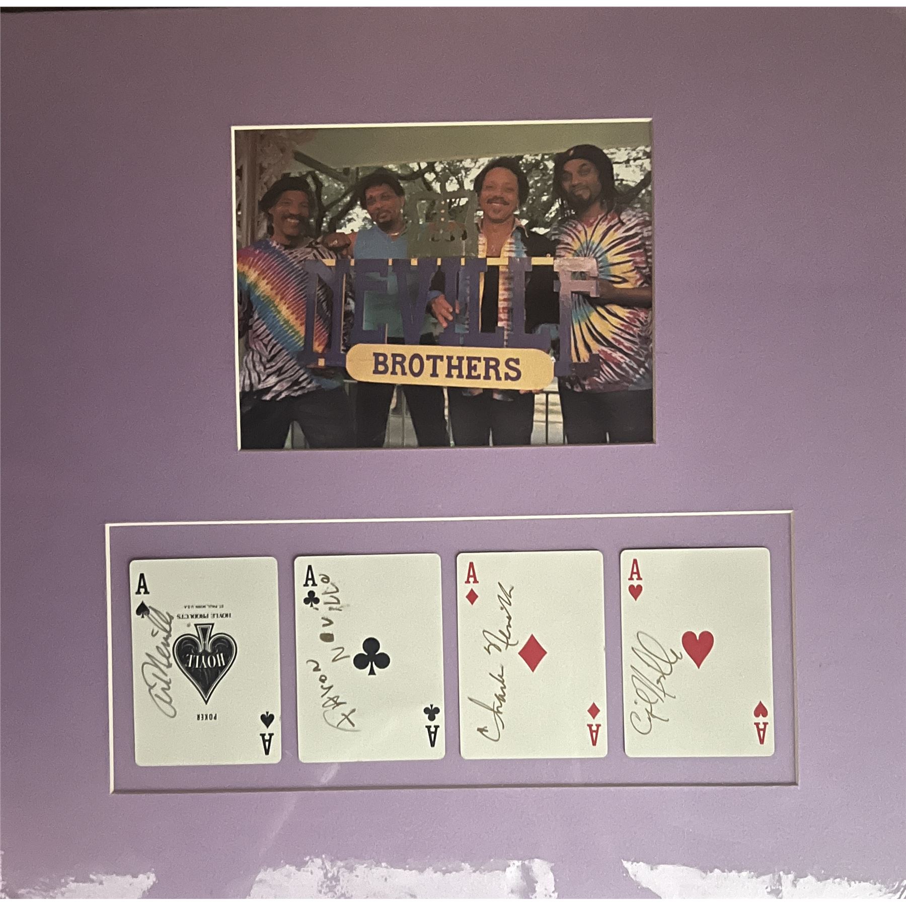 Neville Brothers signed playing cards in custom matte. 15.5 x 15.5 inches