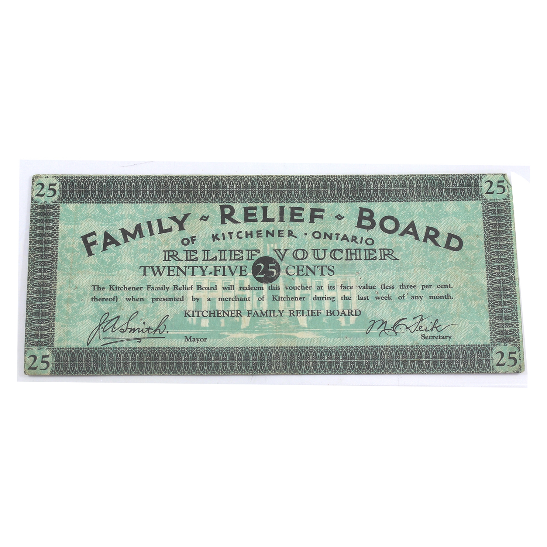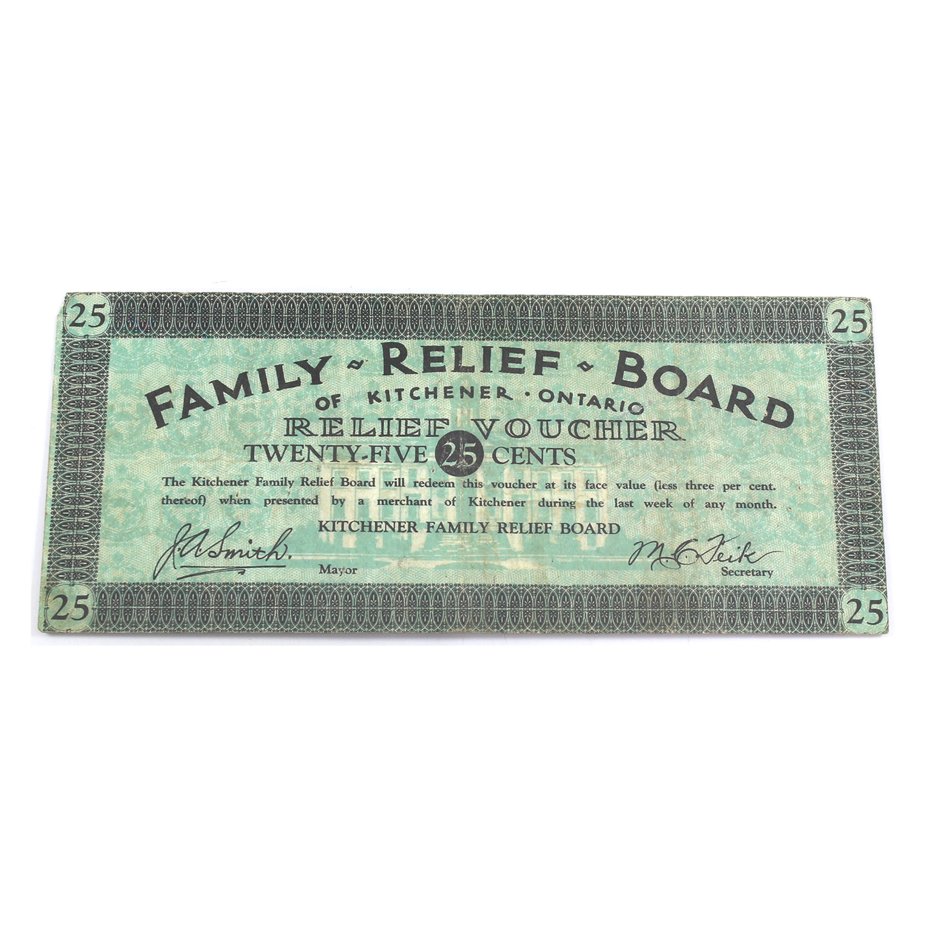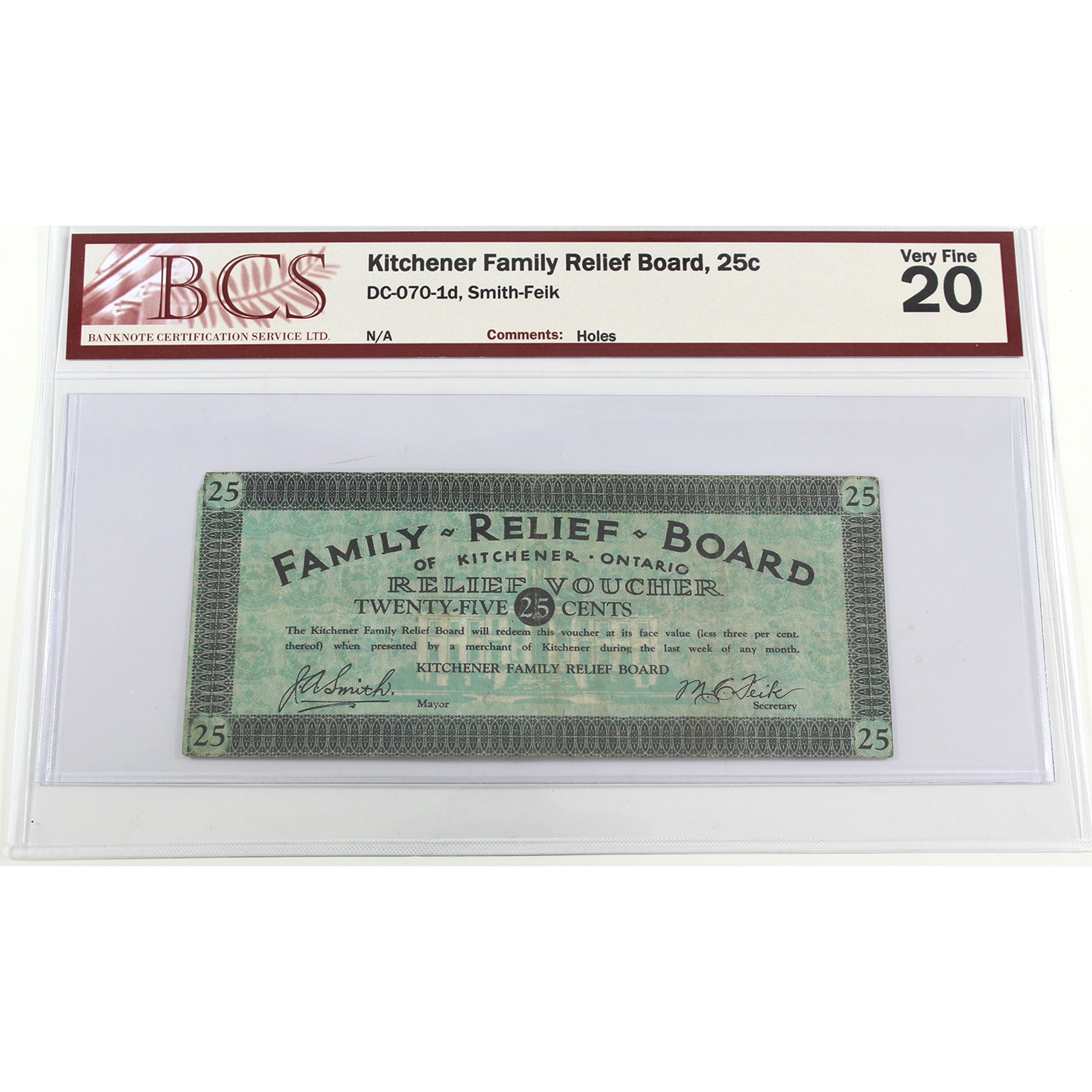 DC-070-1d 25-cent Kitchener Family Relief Board BCS VF20 Smith-Fiek