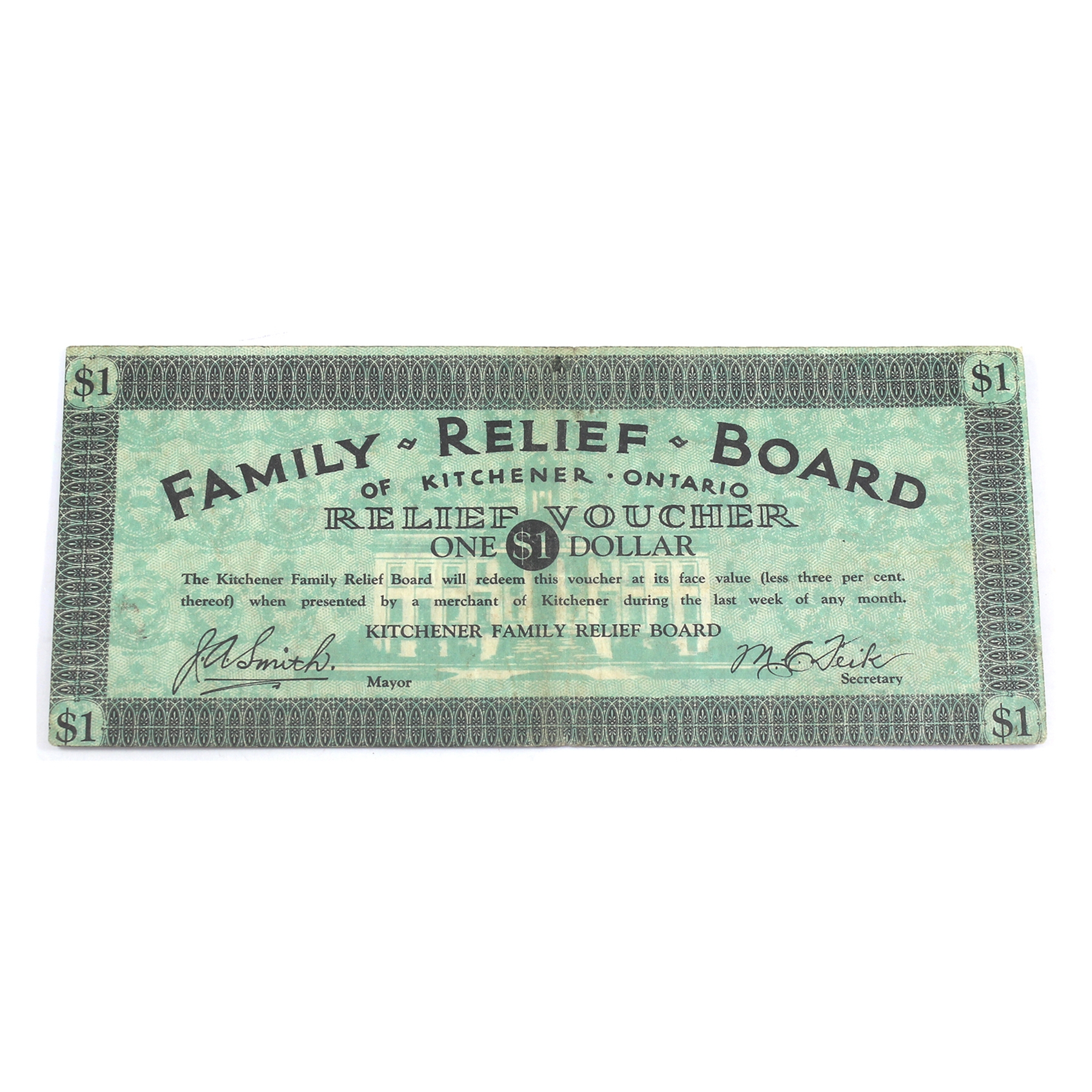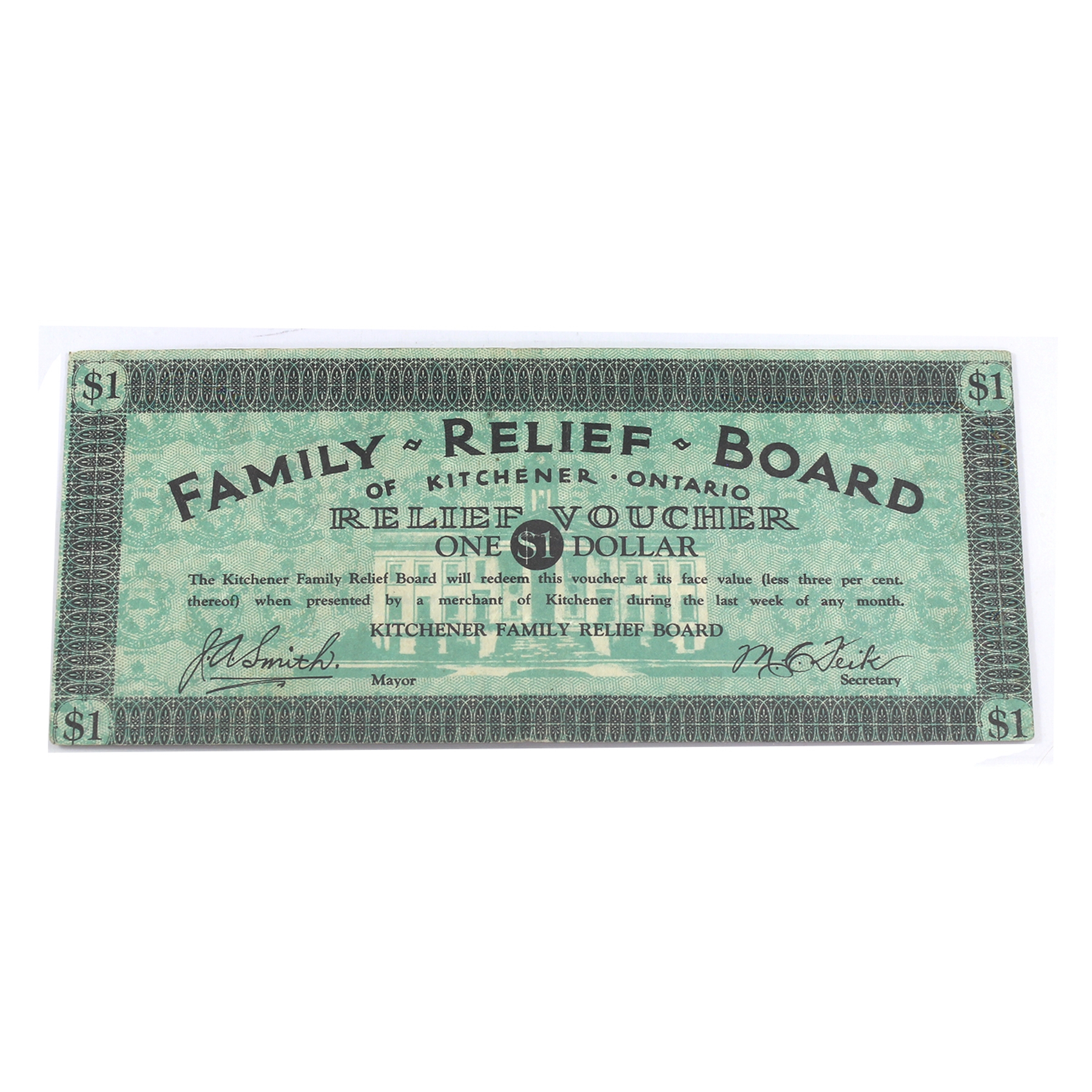 DC-070-1f $1 Kitchener Family Relief Board BCS VF25 Smith-Fiek