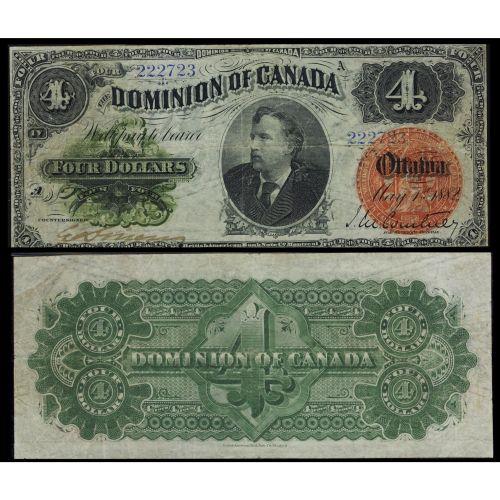 DC-10 1882 $4 #222723 PMG Choice Fine-15. A very rare issue in nice grade. A very bright and desirable example