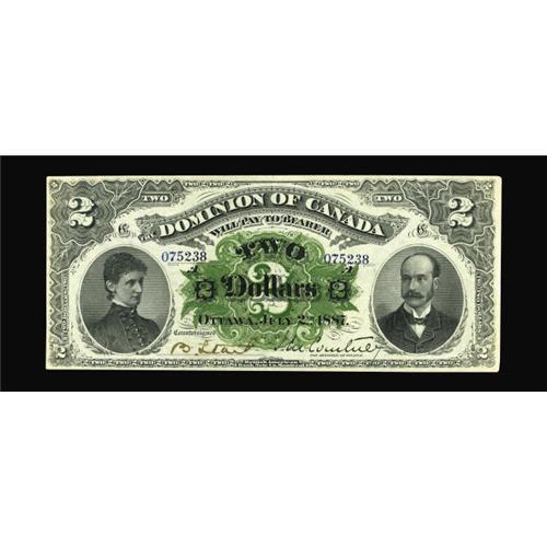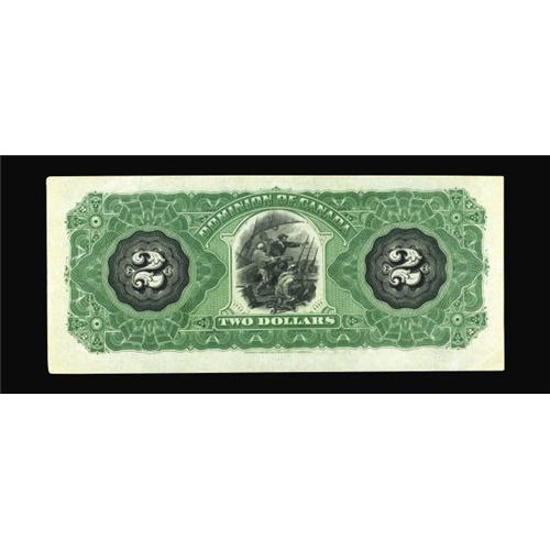 <B>DC-11-i $2 1887</B></I><BR>This lovely note is one of the most significant items in the Halton Lake collection. This series, bearing the "A" designation, was issued for only one year before being discontinued in 1897. Examples in any grade are very scarce, with high grade pieces prohibitively rare. Even the Charlton catalogue fails to list any price in Uncirculated. Our consignor believes this to be the finest known DC-11-i, and we are loath to disagree. The colors are nothing short of spectacular, the centering is exceptional, and the eye appeal compelling. Expect some serious competition to determine who goes home with this rarity today. <B>About Uncirculated.</B></I><BR><I>From The Halton Lake Collection</B></I>