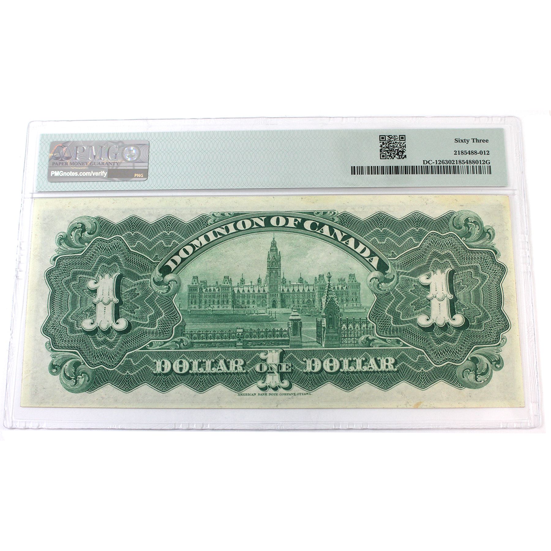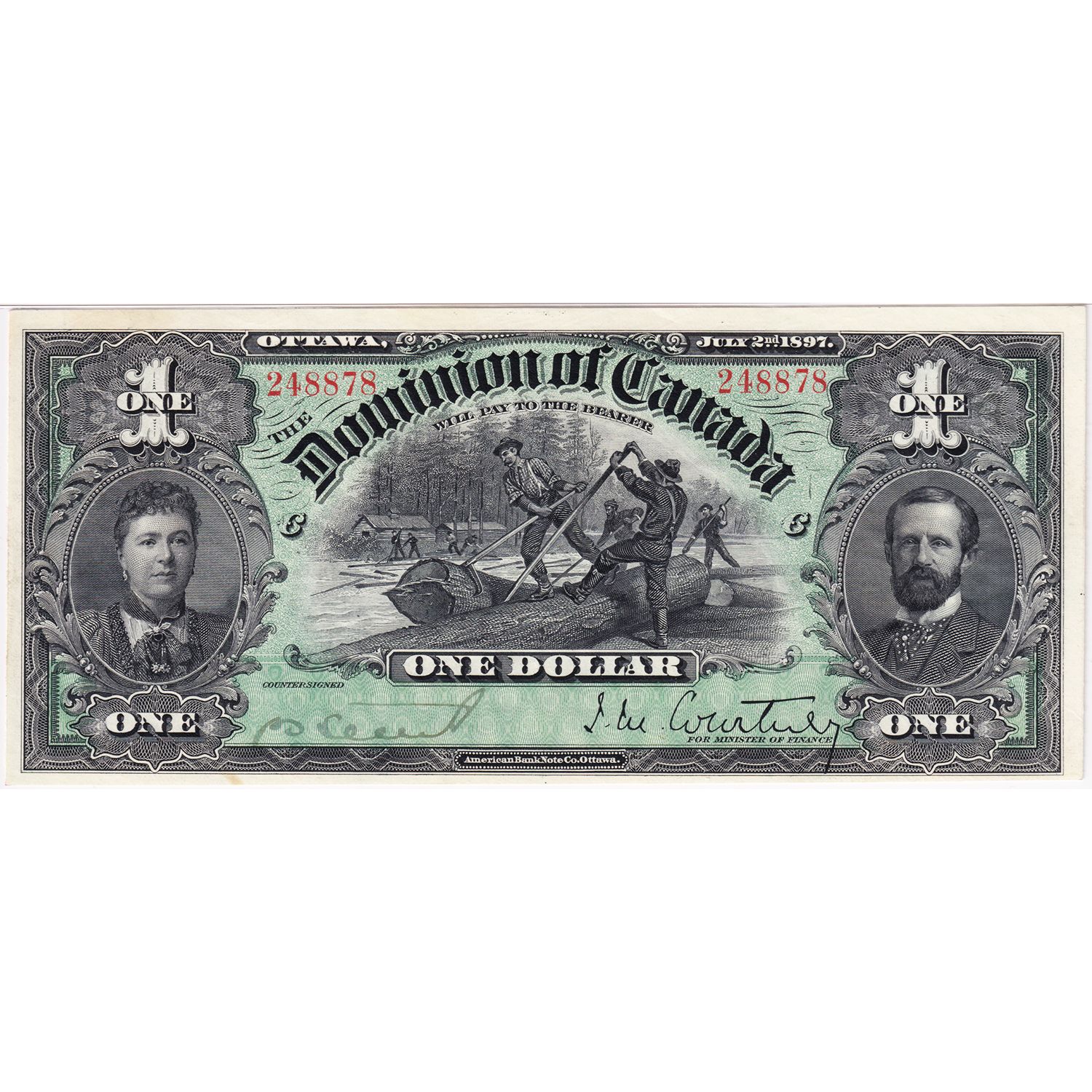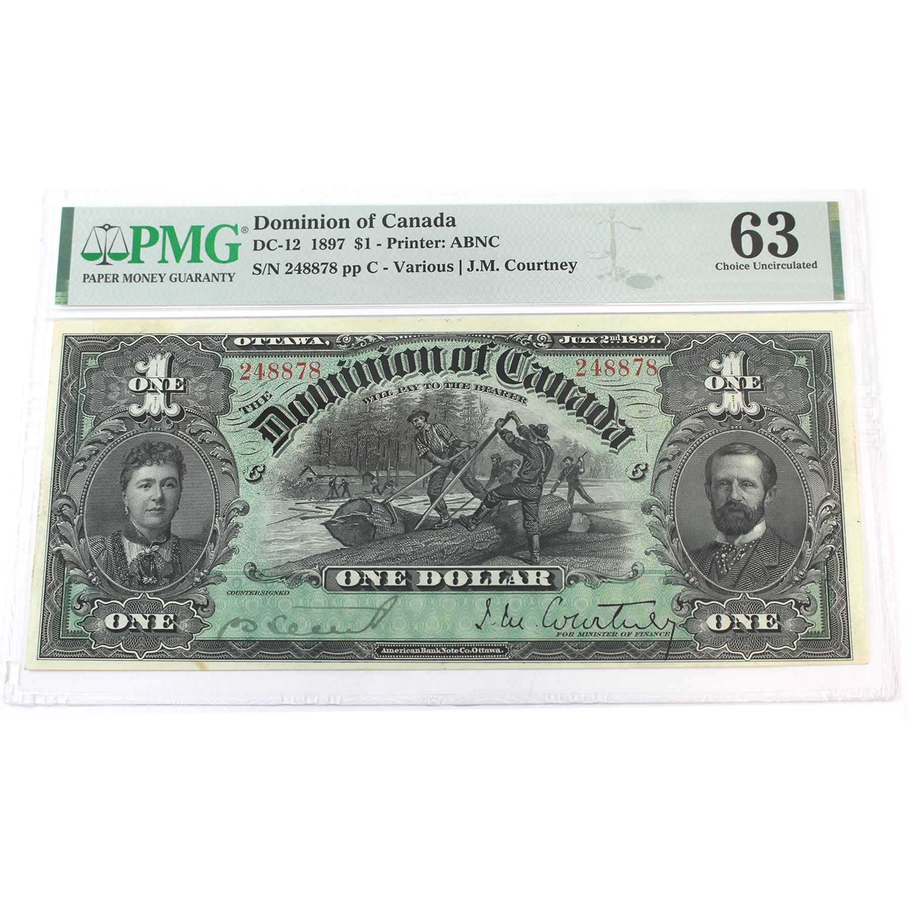 The highest-graded 1897 $1 in the registry, and very fair to look upon. This is the only known uncirculated note in private hands. A must-have for any Dominion of Canada collector!