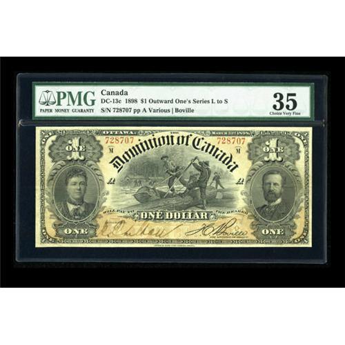 <B>DC-13c $1 1898</B></I><BR> A nice circulated example in a <B>PMG</B></I> <B>Choice Very Fine 35 </B></I>holder. The portraits are those of the Countess and Earl of Aberdeen. <BR><I>From The John Ameen Collection</B></I><BR><BR><b>Shipping:</b> Coins & Currency (<a target="_blank" href="http://www.heritageauctions.com/common/shipping.php">view shipping information</a>)