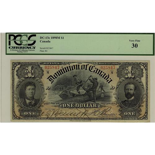 DC-13c 1898 $1 #025847 PCGS VF30, A solid and sharp example.