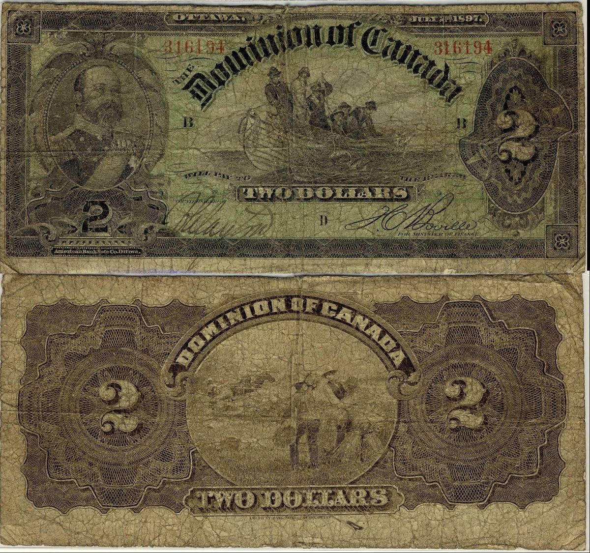 DC-14c, 1897 $2 #316194. Note grades VG with some light pinholes in the middle on note.