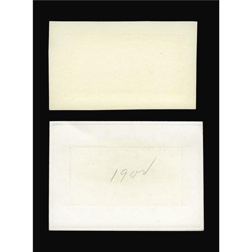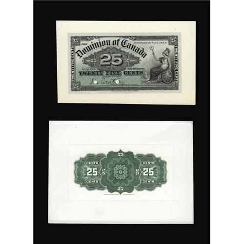 <B>DC-15 25¢ 1900 Face and Back Proofs.</B></I><BR>These have been mounted on card stock with the face proof displaying two punch cancels through the Courtney signature. The back is on card stock that is a little larger than the card stock that the face is mounted on. Also the back proof shows a pencilled "1900." <B>Choice Crisp Uncirculated.</B></I><BR><I>From The Halton Lake Collection</B></I>