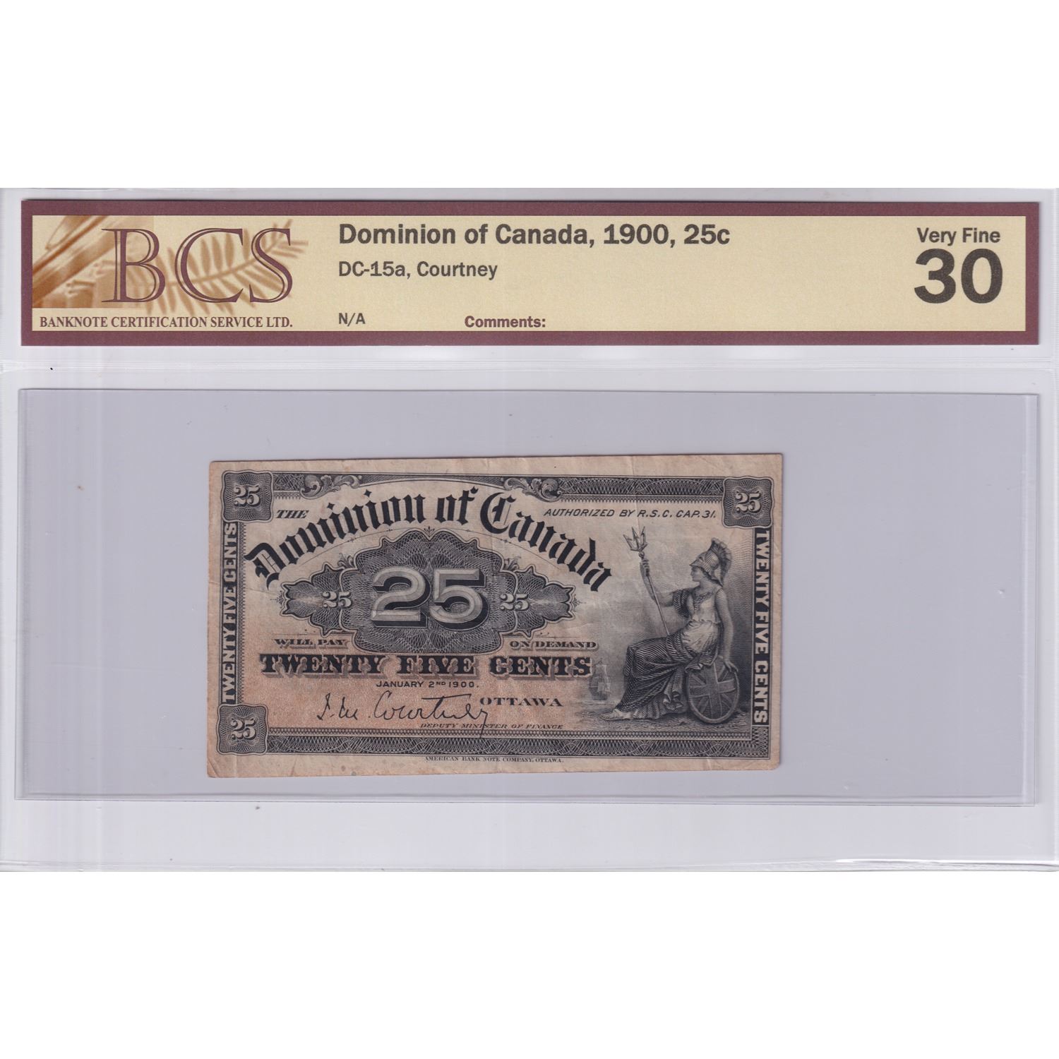 DC-15a 1900 Dominion of Canada 25c, Courtney, BCS Certified VF-30.