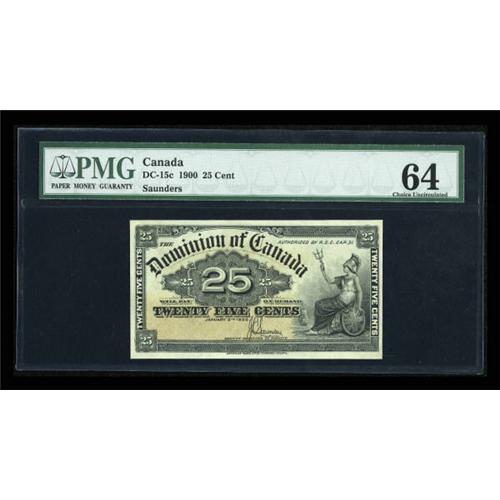 <B>DC-15c 25c 1900</B></I><BR> An attractive example of the last and scarcest of the 1900 fractional issue. PMG <B>Choice Uncirculated 64.</B></I><BR><I>From The Thomas M. Flynn Collection</B></I><BR><BR><b>Shipping:</b> Coins & Currency (<a target="_blank" href="http://www.heritageauctions.com/common/shipping.php">view shipping information</a>)