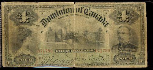 DC-16 1900 $4 Series A 071799. About VG with a few nicks and a very small scuff on back.
