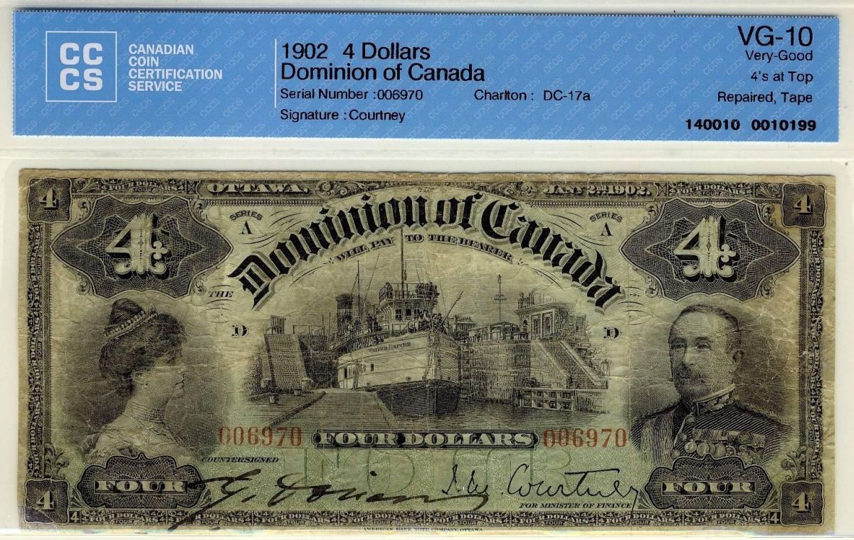DC-17a 1902 $4 CCCS VG10 (tape residue)