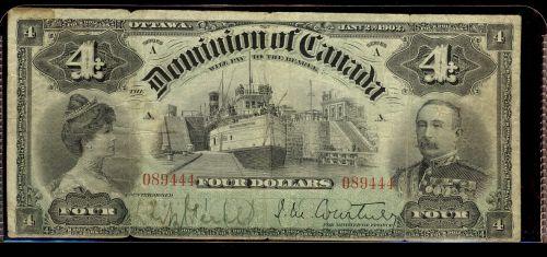 DC-17a 1902 $4 Series A 089444. A clean Fine example. Tough to find in decent condition.