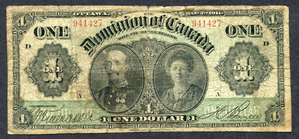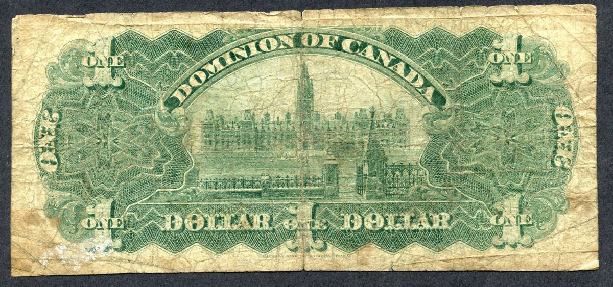 DC-18a 1911 Dominion of Canada $1 Note, Series A, Green Line. Small splits VG