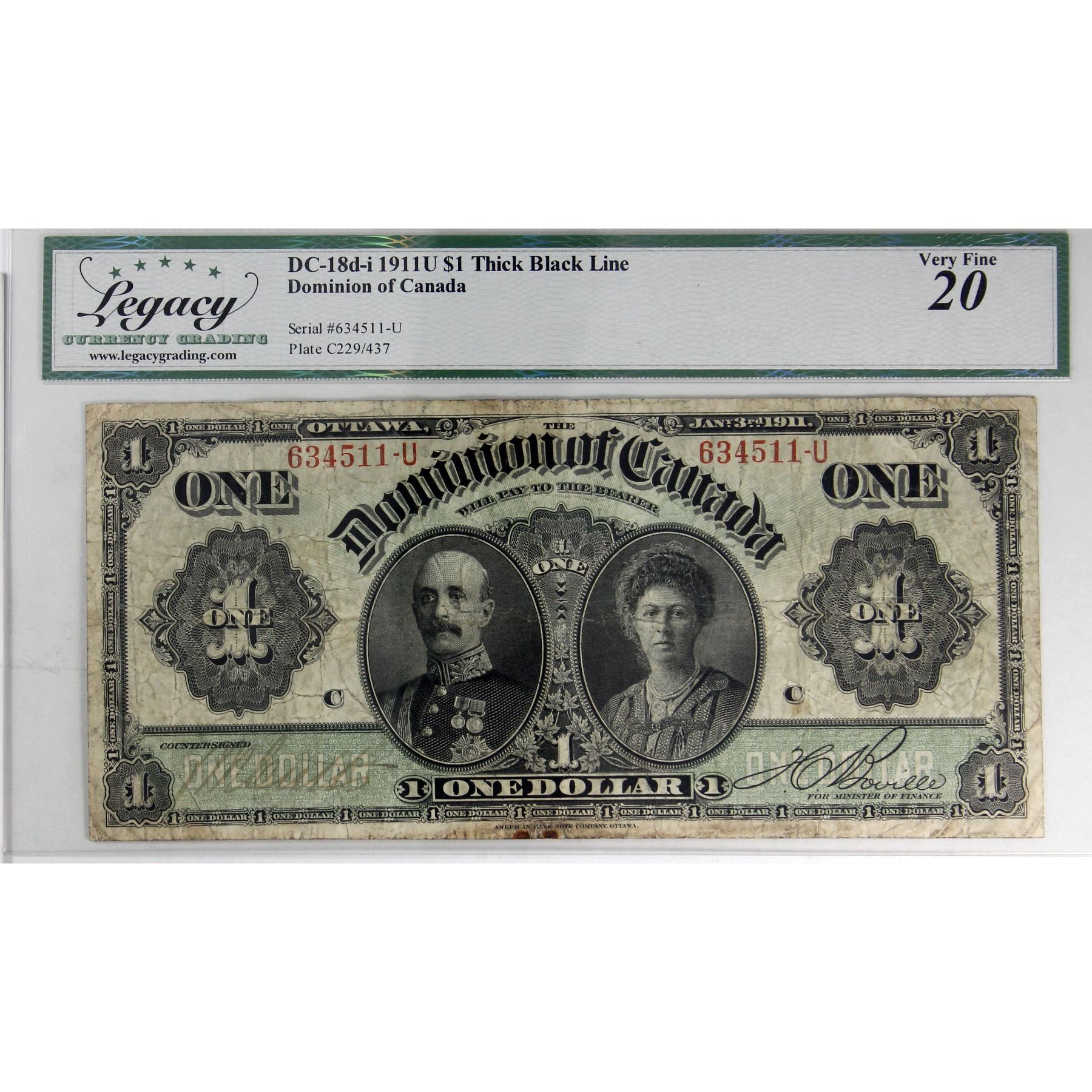 DC-18d-i 1911 $1 Legacy VF20, Thick Black Line SN: 634511-U