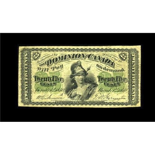 <B>DC-1a 25¢ 1870</B></I><BR>This <B>Fine</B></I> example is evenly circulated for the grade.<BR><BR><b>Shipping:</b> Coin/Currency (<a target="_blank" href="http://www.heritageauctions.com/common/shipping.php">view shipping information</a>) <BR><BR><B>Important
