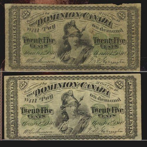 DC-1a and Dc-1b 1870 25 cents. Grades vary from VG to Fine.Lot of 2 notes.