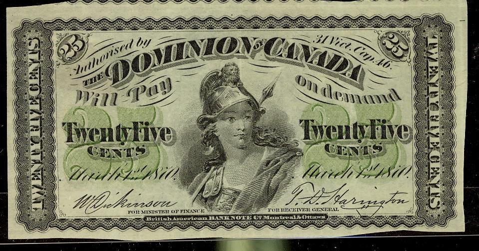 DC-1c 1870 25¢ Shinplaster a bright EF example
