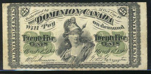 DC-1c 1870 25 cents "shinplaster" about VF, a decent example.