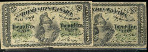 DC-1c 1870 25 cents "shinplasters" plain series. Fine to Fine+, 2 notes.