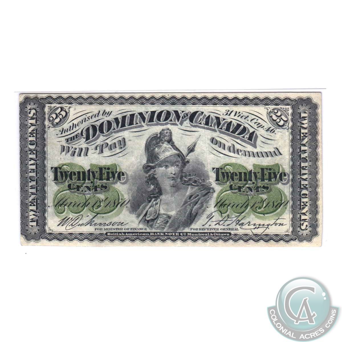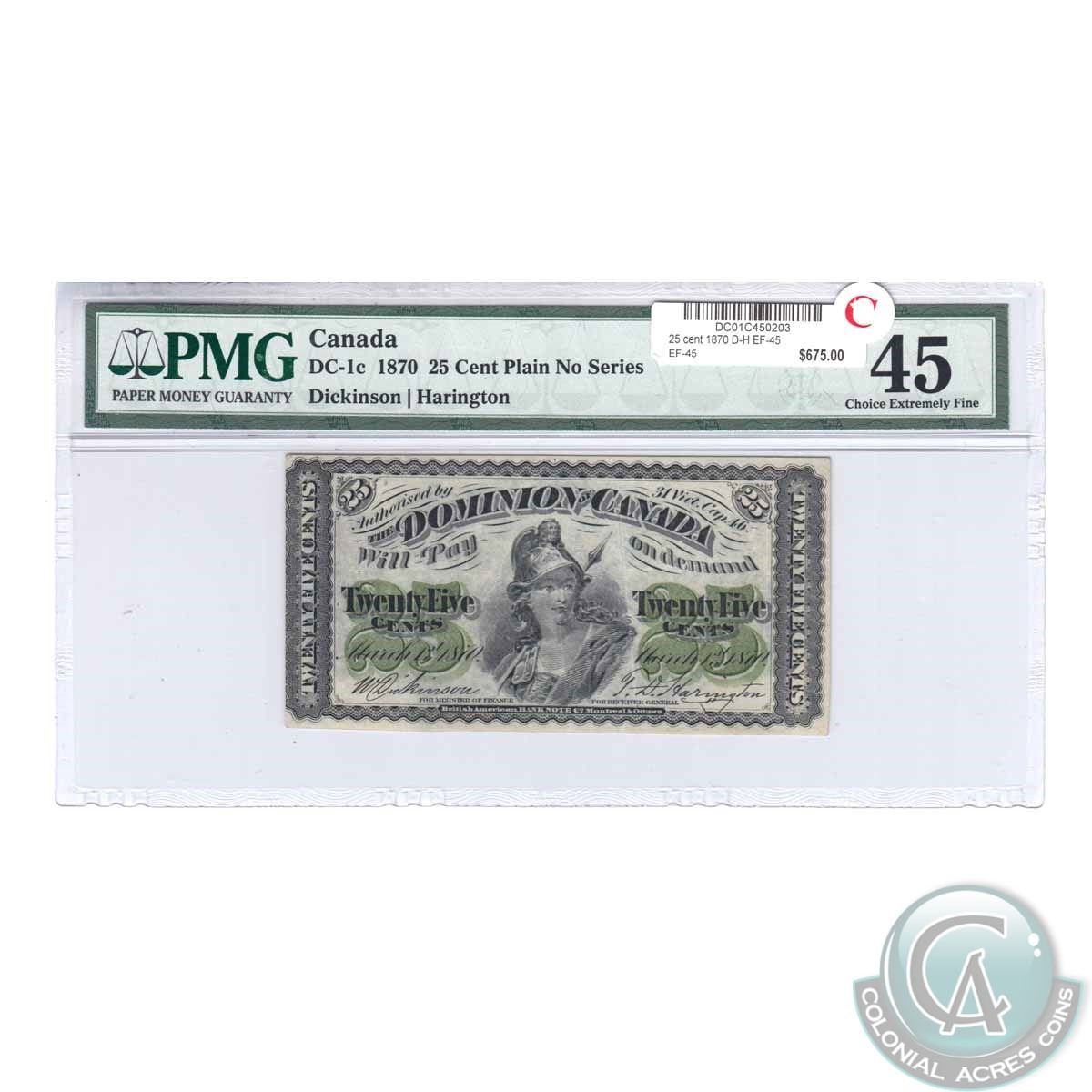 DC-1c 1870 Dominion of Canada 25c, Dickinson-Harington, Plain Series, PMG EF-45