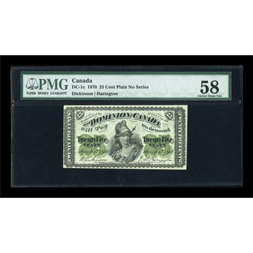 <B>DC-1c 25c 1870</B></I><BR> The last and most available of the three varieties in the 1870 series. PMG <B>Choice About Uncirculated 58.</B></I> <BR><I>From The Thomas M. Flynn Collection</B></I><BR><BR><b>Shipping:</b> Coins & Currency (<a target="_blank" href="http://www.heritageauctions.com/common/shipping.php">view shipping information</a>)