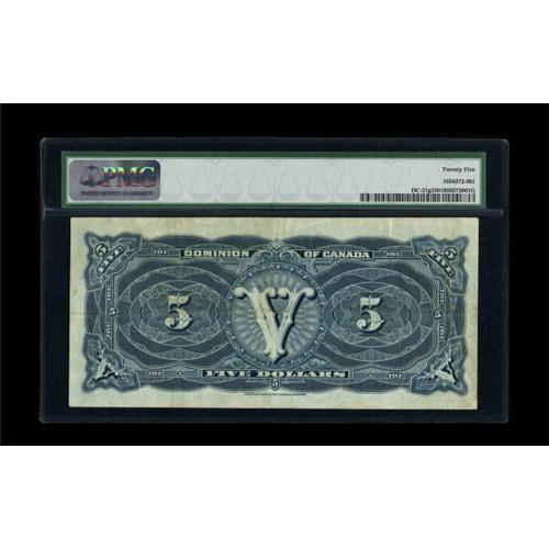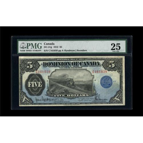 <B>DC-21g $5 1912.</B></I><BR> This is a nice mid-grade example of a "Train" note. This is a Charlton number we have not been able to offer before. <B>PMG Very Fine 25.</B></I><BR><BR><b>Shipping:</b> Coins & Currency (<a target="_blank" href="http://www.heritageauctions.com/common/shipping.php">view shipping information</a>)