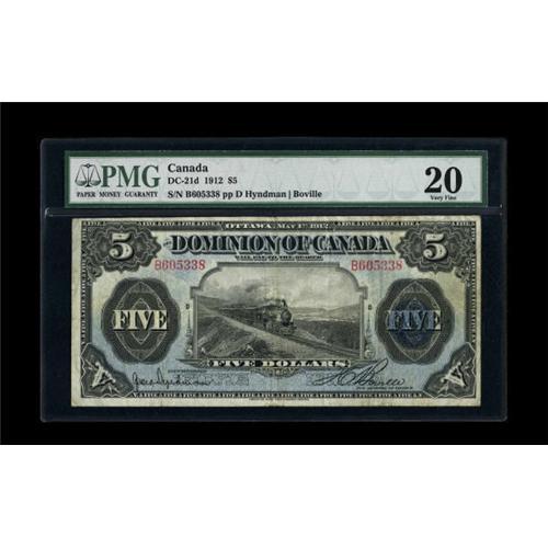 <B>DC-21d $5 1912. </B></I><BR> This is the variety with the seal over the FIVE counter. <B>PMG Very Fine 20.</B></I> <BR><BR><b>Shipping:</b> Coins & Currency (<a target="_blank" href="http://www.heritageauctions.com/common/shipping.php">view shipping information</a>)