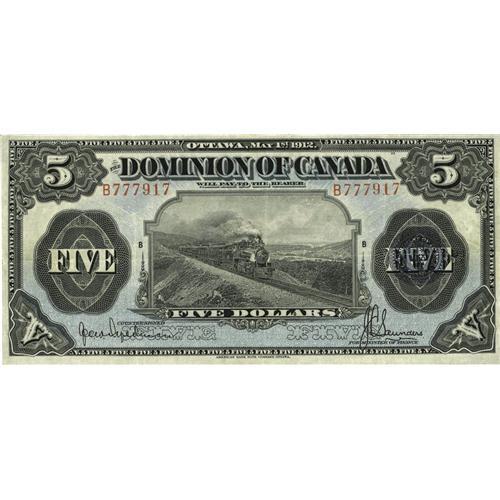 <B>DC-21e $5 1912 Very Fine-Extremely Fine.</B></I> At first glance this attractive note appears to be of a higher grade.<BR><I>From The Halton Lake Collection</B></I>