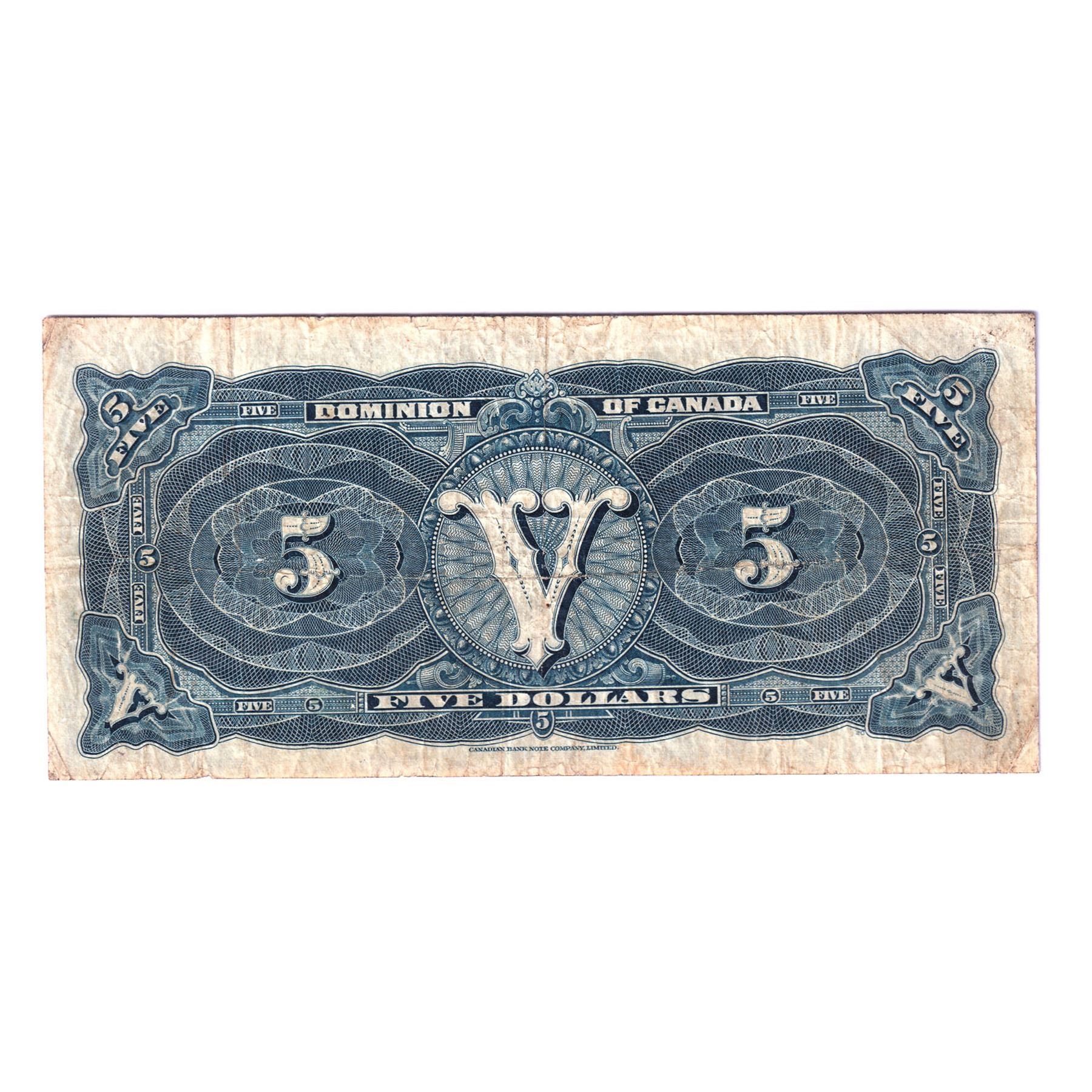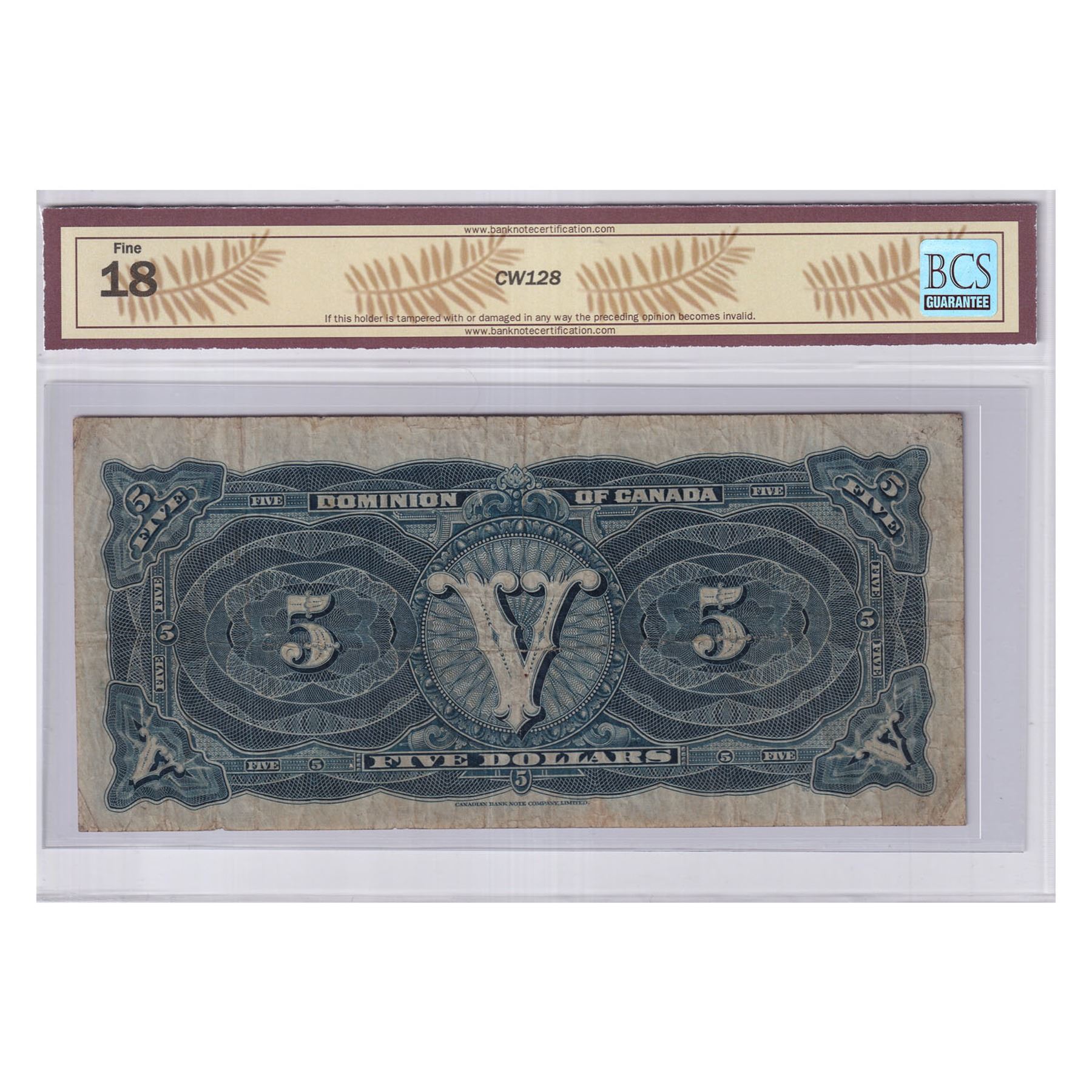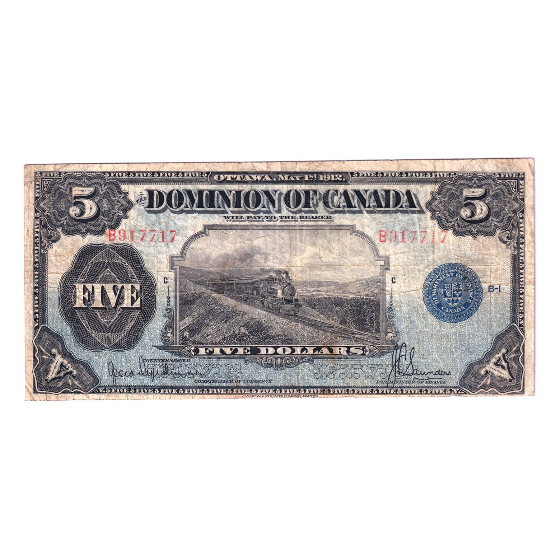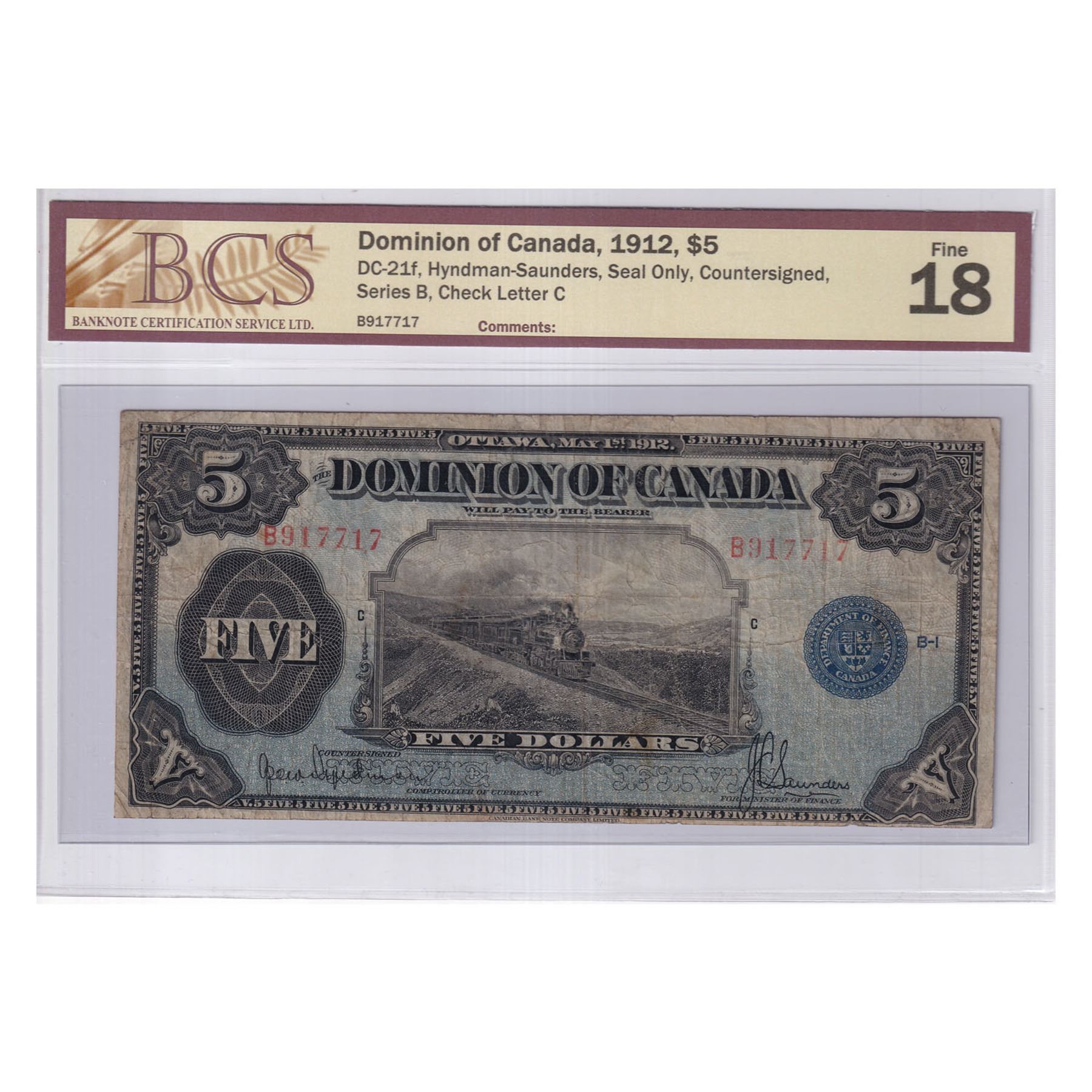 DC-21f 1912 Dominion of Canada $5, Seal Only, Countersigned, Hyndman-Saunders. S/N: B917717-C, BCS Certified F-18. Rare type.