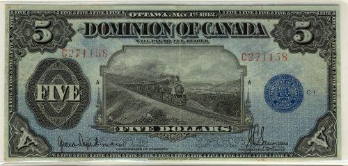 DC-21g 1912 $5 C271158 Hyndman-Saunders, seal only. VF+.