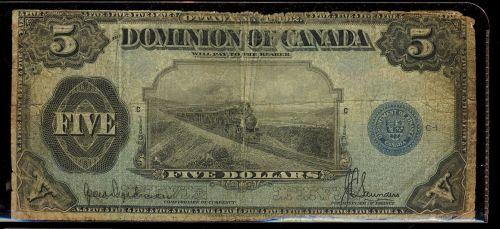 DC-21g 1912 $5 Hyndman-Saunders, Seal only C056969 in Good condition. An affordable TRAIN note example.