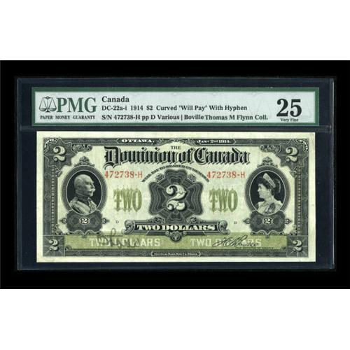 <B>DC-22a-i $2 1914</B></I><BR> The variety with a hyphen between the serial number and the ending letter and the curved "Will pay." PMG <B>Very Fine 25.</B></I><BR><I>From The Thomas M. Flynn Collection</B></I><BR><BR><b>Shipping:</b> Coins & Currency (<a target="_blank" href="http://www.heritageauctions.com/common/shipping.php">view shipping information</a>)