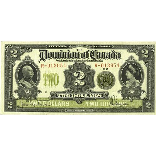 <B>DC-22d $2 1914</B></I><BR>A high grade example of this attractively designed $2 note, which features facing portraits of the Duke and Duchess of Connaught. <B>Extremely Fine.</B></I><BR><I>From The Halton Lake Collection</B></I>