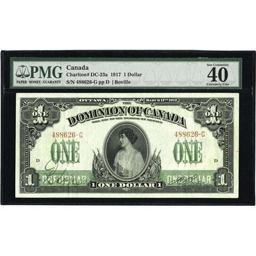<B>DC-23a $1 1917.</B></I><BR>PMG declares that this note has "Exceptional Paper Quality." We see that too through the third-party holder. <B>PMG Extremely Fine 40.</B></I>