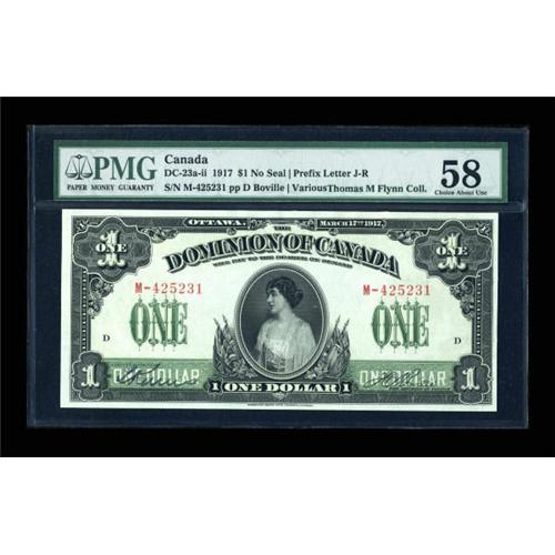 <B>DC-23a-ii $1 1917</B></I><BR> A lovely example with great centering and bold colors that many would call uncirculated. PMG has chosen to be conservative here and label this piece as <B>Choice About Uncirculated 58.</B></I><BR><I>From The Thomas M. Flynn Collection</B></I><BR><BR><b>Shipping:</b> Coins & Currency (<a target="_blank" href="http://www.heritageauctions.com/common/shipping.php">view shipping information</a>)