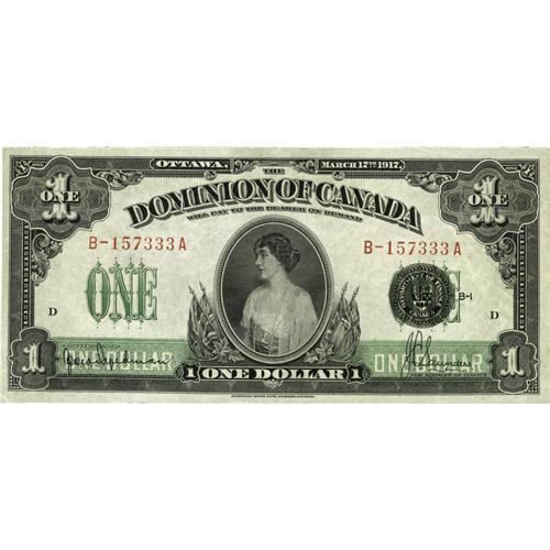 <B>DC-23c $1 1917.</B></I><BR>Minute handling graces this delightful $1 from Series B. <B>Choice About Uncirculated.</B></I><BR><I>From The Halton Lake Collection</B></I>