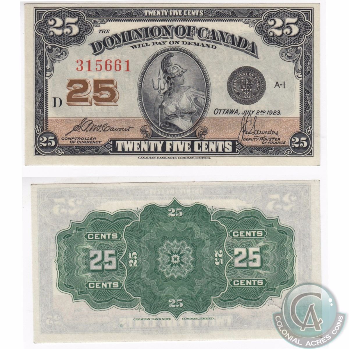 DC-24c. 1923 Dominion of Canada 25c, McCavour-Saunders, S/N: 315661/D in Almost UNC Condition. A problem free example.