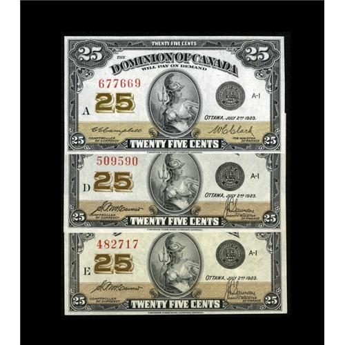 <B>DC-24c 25¢ 1923. Two Examples. AU.</B></I><BR><B>DC-24d 25¢ 1923 AU.</B></I><BR>Each of these notes have a center fold.<BR><I>From The Halton Lake Collection</B></I>