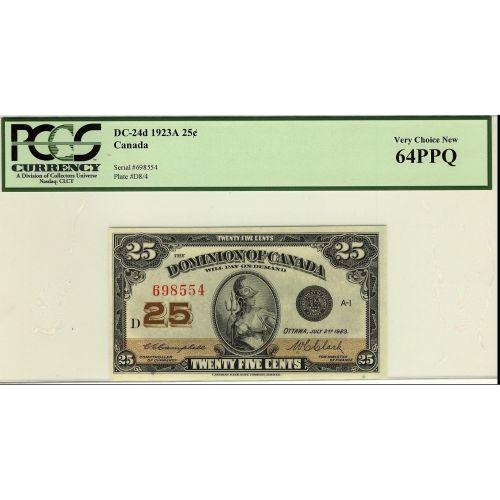 DC-24d 1923 25¢ 698554 PCGS UNC-64 PPQ