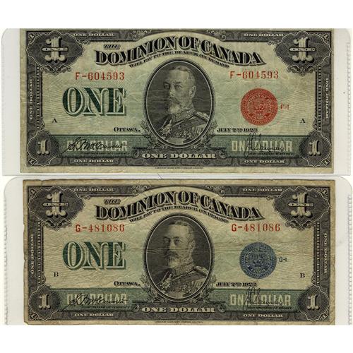 DC-25b and DC-25c 1923 $1 #G-481086, #F-604593, Lot of 2 notes both Fine.