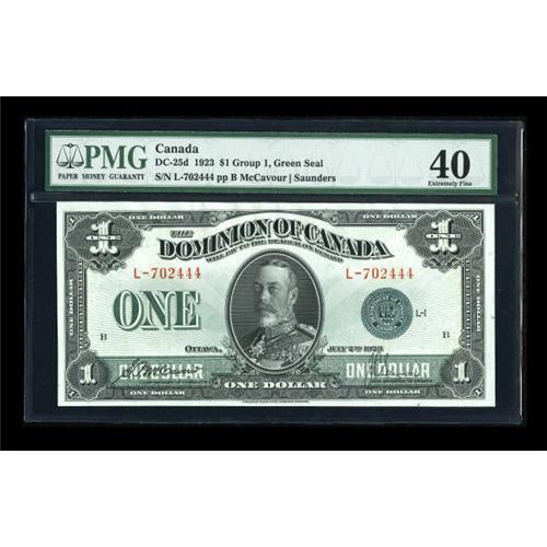 <B>DC-25d $1 1923</B></I><BR> A Group 1 green seal graded <B>Extremely Fine 40 </B></I>by PMG.<BR><I>From The Thomas M. Flynn Collection</B></I><BR><BR><b>Shipping:</b> Coins & Currency (<a target="_blank" href="http://www.heritageauctions.com/common/shipping.php">view shipping information</a>)