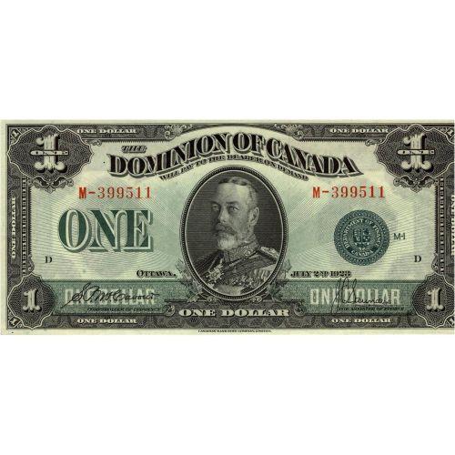 DC-25d, 1923 $1 #M-399511 UNC. A superb Dominion example in Original UNC, Crisp and Clean with solid borders