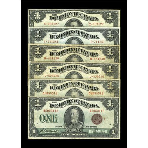 <B>DC-25d; e; f; g; i; k $1 1923.</B></I><BR>Six different notes ranging in grades from <B>Very Good</B></I> to <B>Very Fine.</B></I> The best note of the lot is the DC-25k note.<BR><I>From The Halton Lake Collection</B></I>