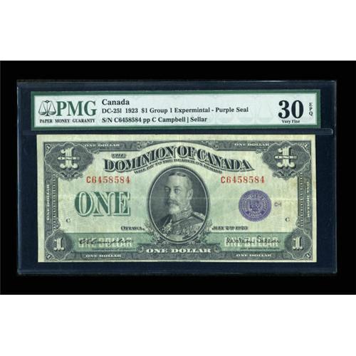<B>DC-25l $1 1923</B></I><BR> This is a very rare note in this grade, with the Charlton reference declaring "DC-25l is very rare in original VF or better, with only one uncirculated example known at this time and none graded AU." PMG <B>Very Fine 30 EPQ, </B></I>a note which certainly far eclipse its artificially low catalogue valuation of $1250 in VF.<BR><I>From The Thomas M. Flynn Collection</B></I><BR><BR><b>Shipping:</b> Coins & Currency (<a target="_blank" href="http://www.heritageauctions.com/common/shipping.php">view shipping information</a>)
