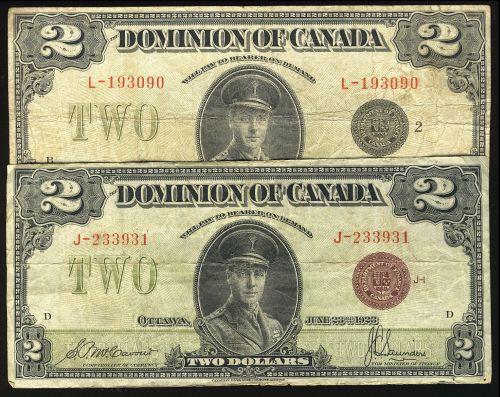 DC-26e "bronze seal" J-233931, DC-26f "black seal" L-193090 both notes are nice Fine to F+.