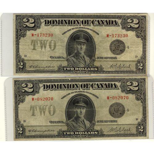 DC-26l 1923 $2, #W-173230 #W-082070. Lot of 2