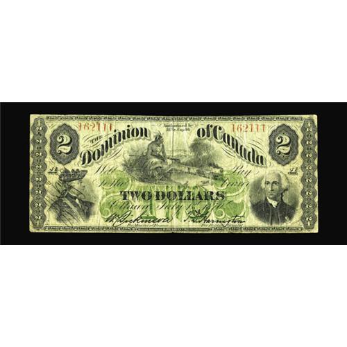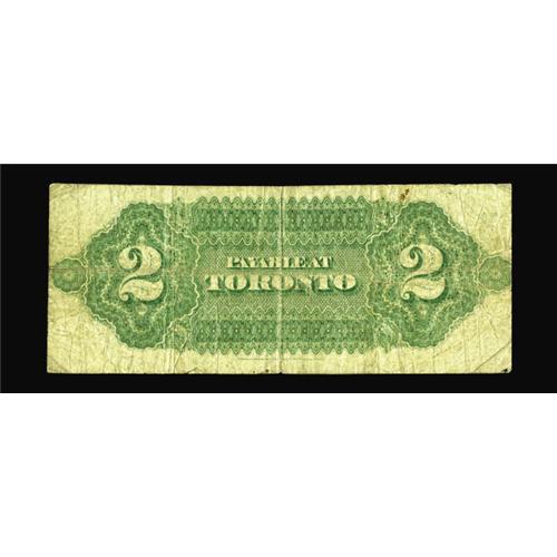 <B>DC-3b $2 1870</B></I><BR>A more than acceptable specimen of this very scarce denomination. This piece is payable at Toronto. <B>Fine.</B></I><BR><I>From The Halton Lake Collection</B></I>