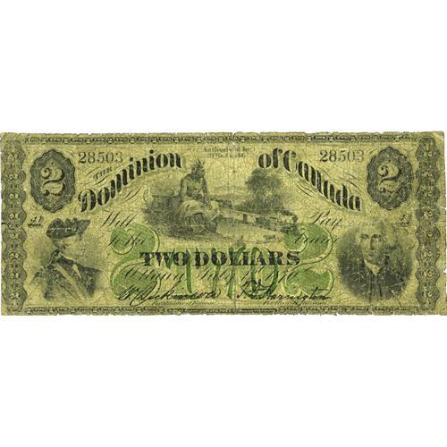 <B>DC-3d $2 1870</B></I><BR>This payable at Halifax $2 note is just plain rare in any grade. <B>Good-Very Good,</B></I> with the usual minor flaws, splits, pinholes, etc., common to the grade.<BR><I>From The Halton Lake Collection</B></I>